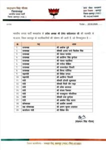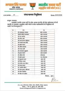 संगठन को बूथ स्तर तक मजबूत करने की रणनीति के तहत यह नियुक्तियां की गई हैं। पार्टी नेतृत्व का कहना है कि नए पदाधिकारियों के जरिए सामाजिक संतुलन और संगठनात्मक मजबूती पर विशेष ध्यान दिया गया है।